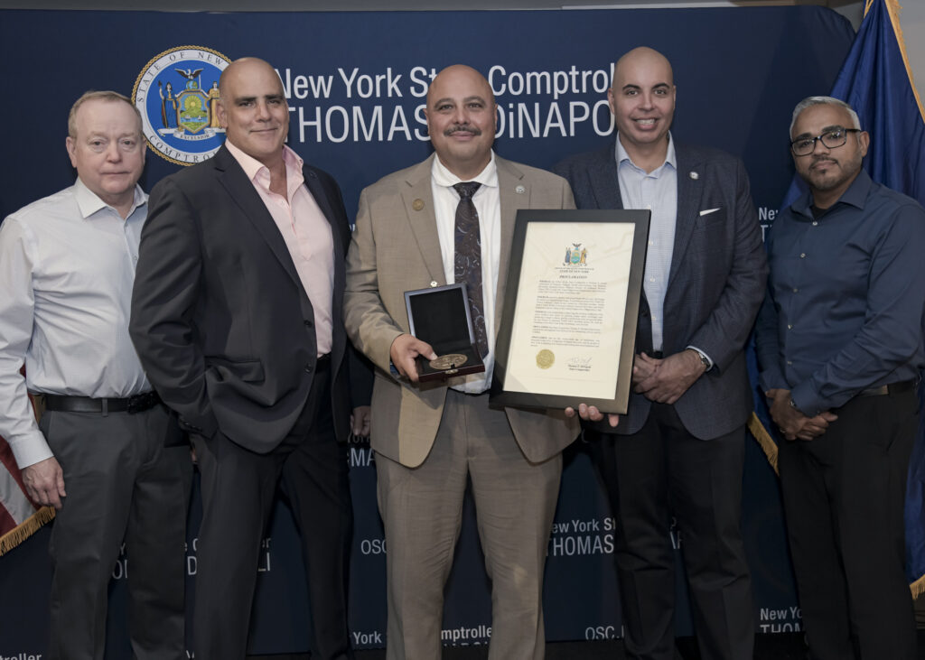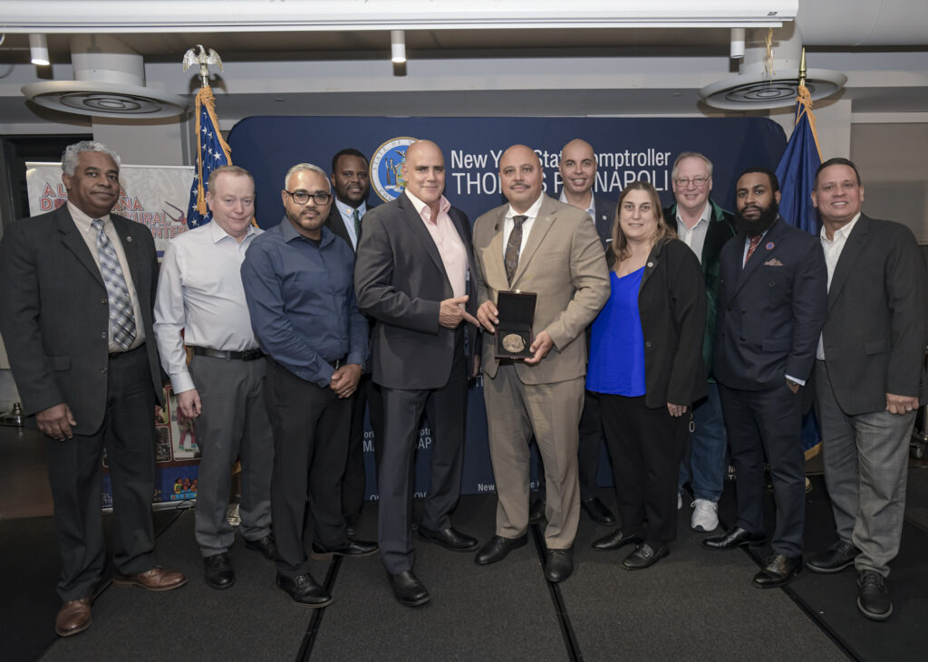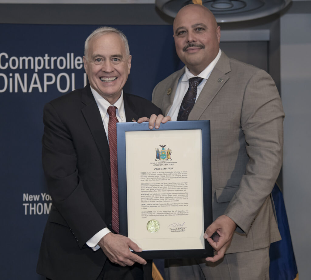 The New York State Comptroller’s Tom DiNapoli honoring Local 106 Recording Secretary Jose DeJesus during their Hispanic Heritage Month