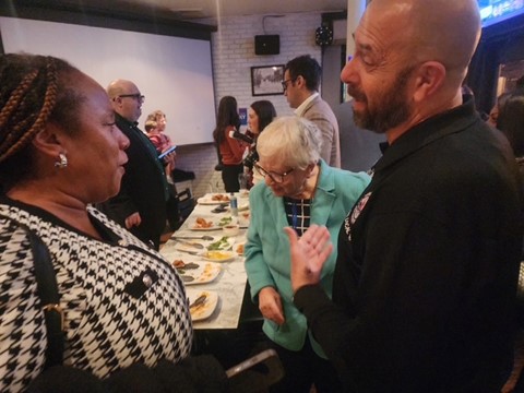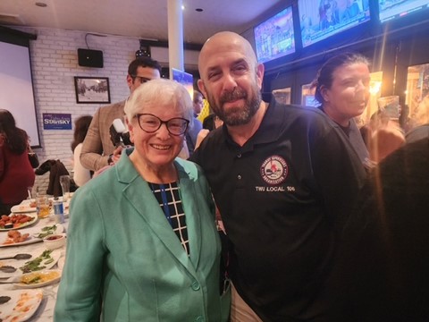 After several hours in the office, followed by train rides and 8 tough hours of fighting in Arbitration, Queens Division Chairman/Political Director, Todd Napoletano still finds the time to show up at an event for Queens Senator and friend of Local 106 Toby Stavisky.