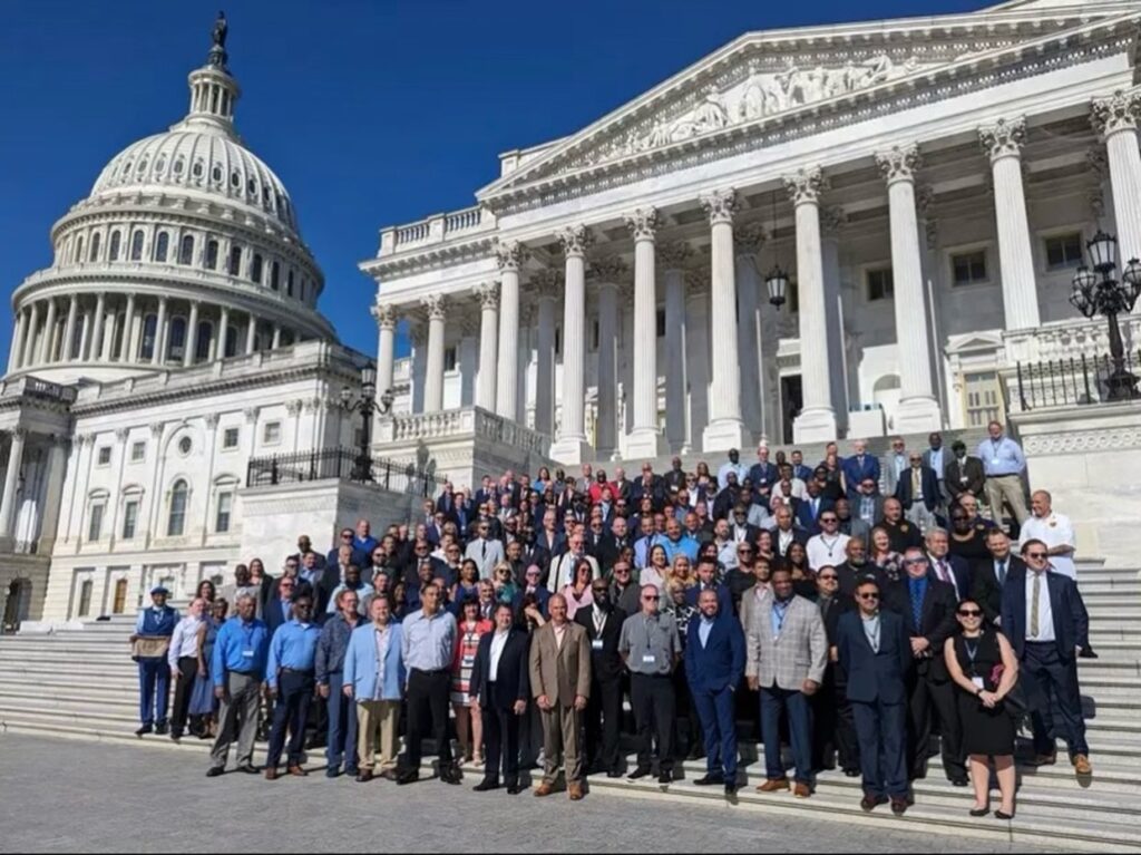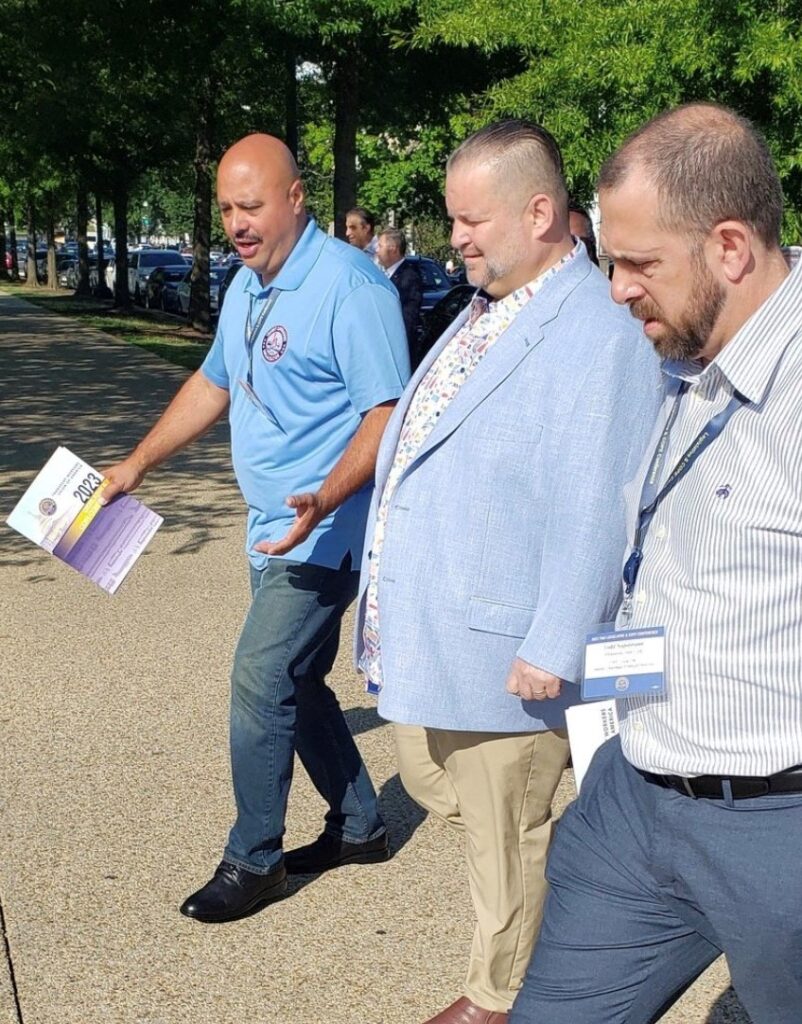 TSO Recording Secretary, Jose DeJesus, TWU Int. President John Samuelson and TSO Queens Division Chairman, Todd Napoletano walk to the US Capital building. In DC for the TWU 2023 Legislative and Cope Conference.